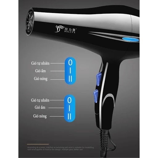 - Máy có 3 tốc độ gió: nóng - vừa - mát giúp người dùng thỏa sức lựa chọn độ sấy phù hợp với chất tóc của mình, bảo vệ tóc tránh gây hư tổn.