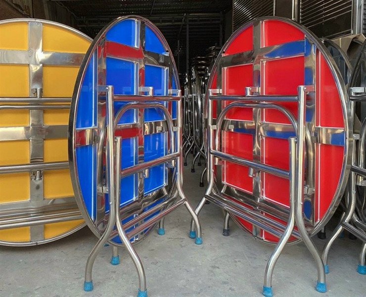 Bàn tròn inox 1m2 mẫu mới, mặt ép Alu, dày dặn, rất cứng cáp, cân nặng 13kg không đổ cát.