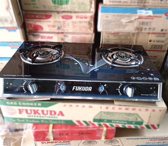 Bếp gas đôi Fukuda kiềng rời tráng men sen đồng thau khung inox