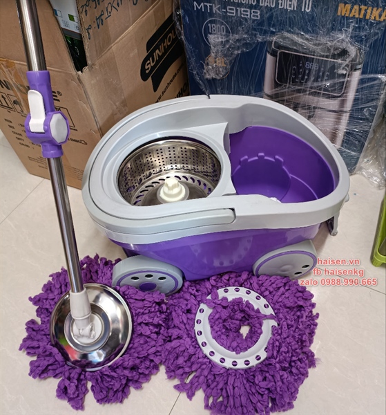 Bộ lau nhà 360 độ BX78 Vitory rỗ inox có bánh xe, tay kéo