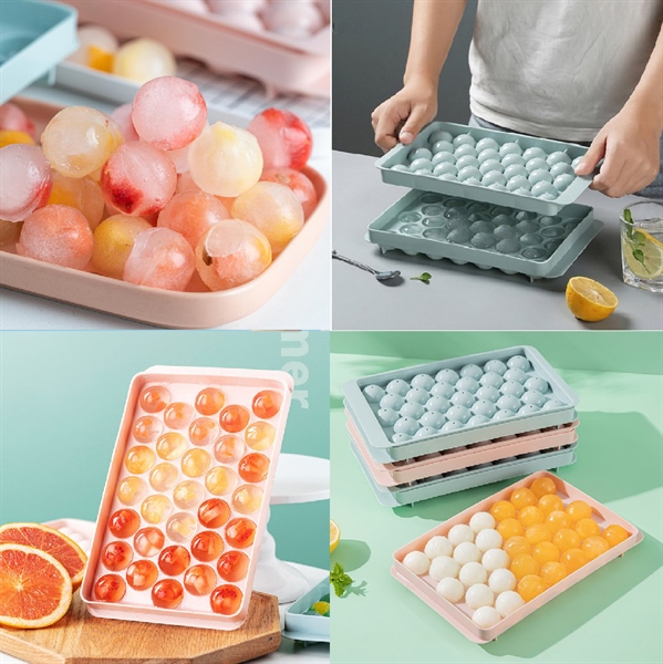 Khay đá bi tròn tủ lạnh 33 viên có nắp đậy Việt Nhật (6978), Khuôn làm thạch hoa quả hình bi tròn ngộ nghĩnh