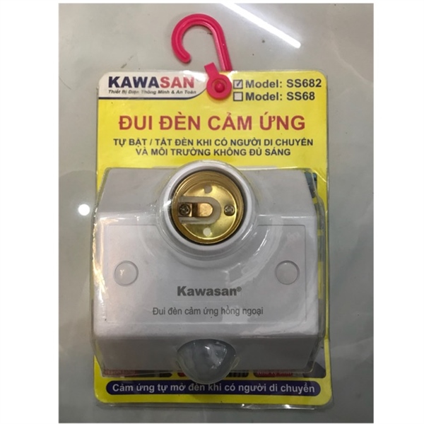 1. Đặc Điểm Đui Đèn Cảm Ứng Chuyển Động Kawasan KW-SS682: - Đây là thiết bị cảm biến nhận diện sự chuyển động của con người. - Tự động mở đèn khi có người di chuyển và thiếu ánh sáng (dưới 10 lux 6:30tối).Tự động mở đèn khi thiếu ánh sáng(dưới 10 lux – 6:30 tối) có người di chuyển trong vùng cảm ứng. 2. Thông Số: Đui Đèn Cảm Ứng Chuyển Động Kawasan KW-SS682: - Điện áp nguồn: 180 ~ 230VAC. - Tần số: 50Hz. - Công suất tiêu thụ max: 36w hoặc 20w (LED). - Thiết kế : Đui đèn chuẩn E27. - Bán kính và góc quét cảm ứng: 2 -4m/ 360 x 110 độ. - Thời gian tự tắt: 120 giây. 3. Hướng Dẫn Sử Dụng: - Gắn thiết bị lên tường, trần nhà sau đó gắn bóng đèn xoáy chuẩn E27 vào cắm nguồn điện, lúc đầu đèn chớp 3 lần rồi tự tắt, khi trời tối, nếu có người di chuyển trong vùng quét của cảm ứng, lập tức đèn sẽ bật sáng và được duy trì liên tục. - Khi không có người di chuyển trong vùng cảm ứng nữa, sau thời gian trễ từ 100 giây đến 120 giây đèn sẽ tự tắt. Lắp đặt: - Khoan 2 lỗ trên vách tường, trần nhà trùng với kích thước trên thiết bị gắn thiết bị lên cách mặt đất khoảng 1m- 2,5m, chiều mắt cảm ứng nằm xuống phía dưới. ***Lưu ý: Đèn chỉ sáng khi có người vào lúc trời tối ( Khoảng 18h30 đến 6 giờ sáng ).