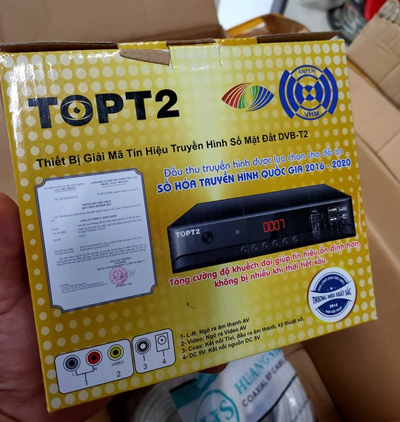 Đầu thu DVB T2 TOPT2là một loại đầu thu không đóng phí thuê bao, thuộc một trong những đầu thu của truyền hình mặt đất, thu sóng bằng anten, có tích hợp trong tivi, với kênh truyền hình đặc sắc trong nước việt nam.